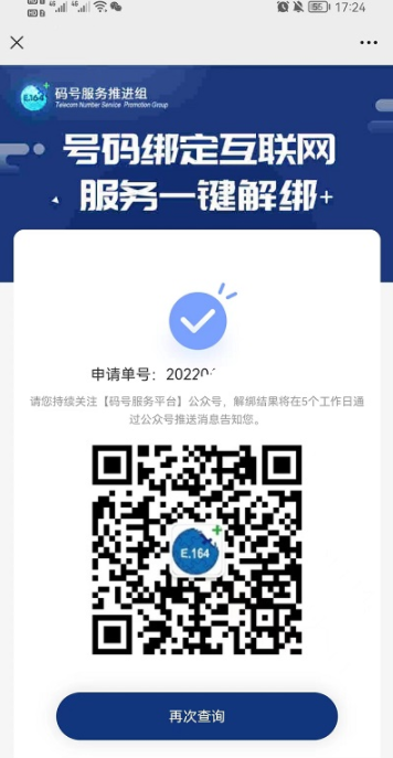 6、完成解绑之后,就可以关注【码号服务平台】在五个工作日内等待解绑的回复即可。