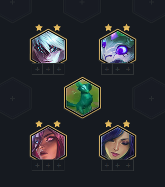 2-5升5人口,可凑2格斗2护卫2重骑,或2炮手2射手,2-3升6人口,补充羁绊不D,有石傲天妮蔻即可开6玉龙,4-1升7人口,血量低于60则D牌提升质量可优先出二星冰鸟和3星纳尔,若血量大于80则攒钱。