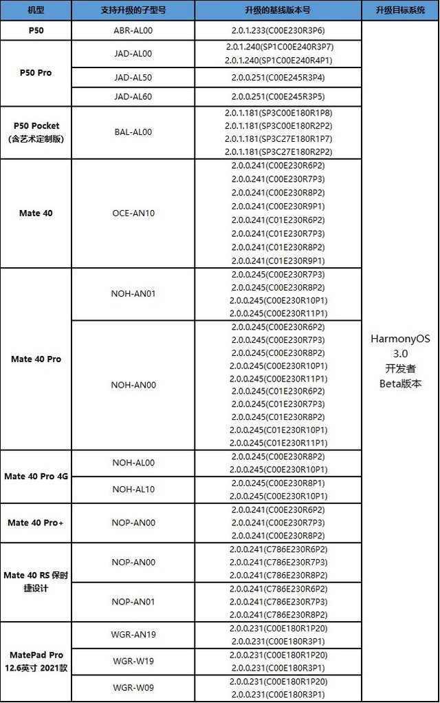 华为手机:P50、P50 Pro、P50 Pocket 、Mate 40、Mate 40 Pro、Mate 40 Pro 4G、Mate 40 Pro+、Mate 40 RS 保时捷设计。