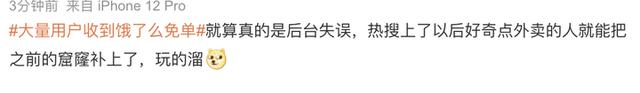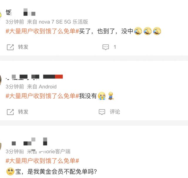 部分网友猜测,是操作失误才收到了官方免单的通知;也有网友猜测这是平台活动,符合某些条件的消费者获得免单。截至目前,饿了么尚未作出回应,也没有相关活动的官方通告。