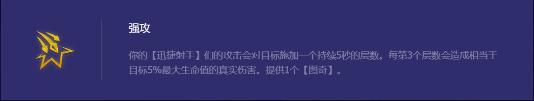 强攻:这是射手的最强巨龙圣坛之弈,对目标加一个持续5秒的层数,每第3个层数目标受到5%最大HP真伤,尤其是射手们的攻速足够快,对面还没放出技能怪就死完了,来了必选。