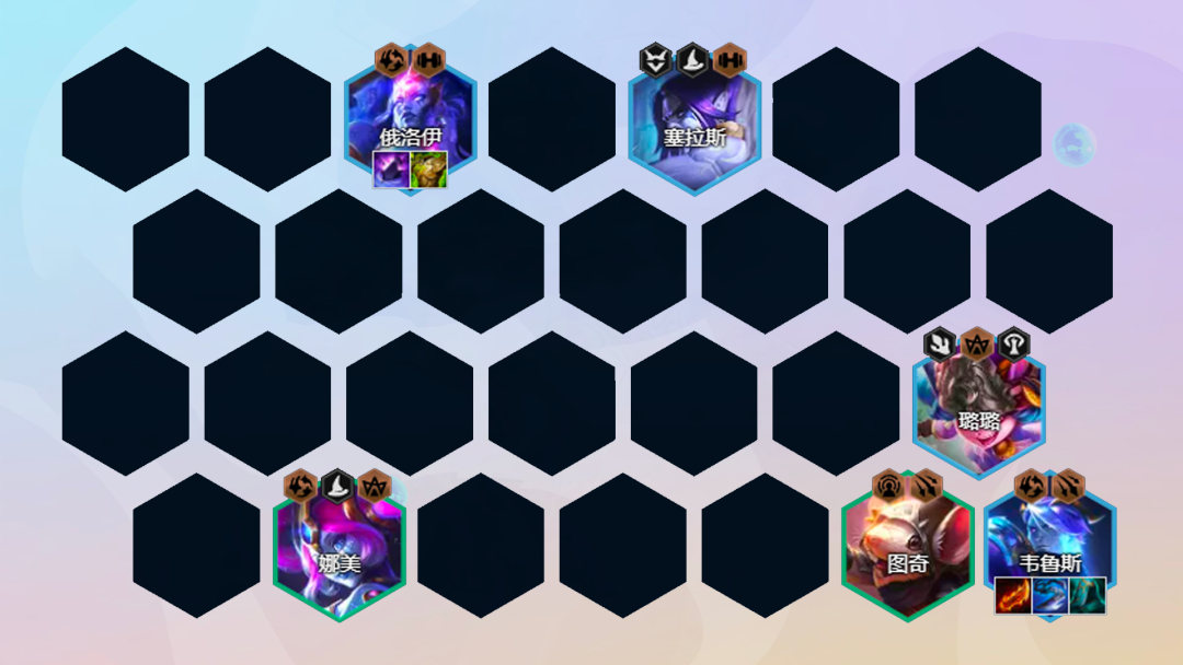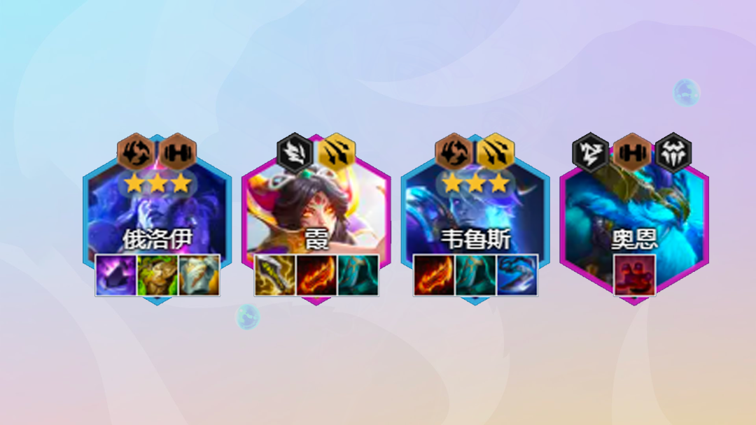 阵容组成:俄洛伊、奥恩、韦鲁斯、露露、霞、图奇、娜美/巴德、艾希