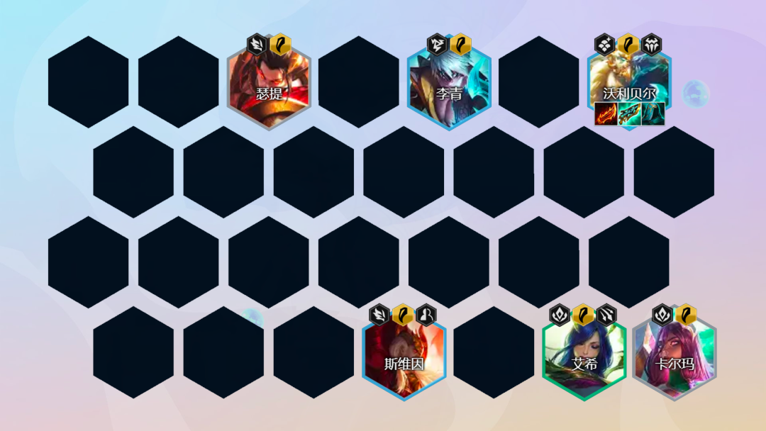 这套阵容构建非常简单,核心在于6神龙3半神羁绊,只要有这两个羁绊的英雄直接拿即可。沃利贝尔越早2星,装备对的情况下就能够轻松吃分,后期打龙只要直接站在龙一侧,直接开锤即可。