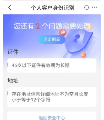 1、身份证有效期,过期,需重新补办身份证到银行更新。