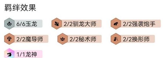 传统金龙炮有着缺乏输出的诟病,带着石傲玉妮寇的玉龙炮坦度足够,但是输出提高了很多,能快速清掉前排并且控制拉满。且换形妮寇廉价坦度+容易2星,石傲玉以开羁绊为主,有合适的装备就给。