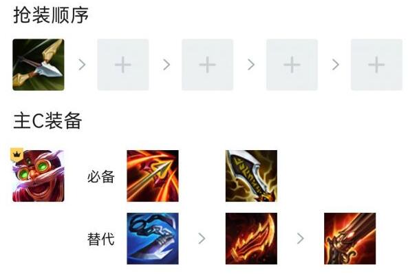 飞机的飓风(大招多段触发)保证能打到后排,第二件无尽,最后一件有啥做啥,水银羊刀火炮巨杀轻语看对局自行选择。