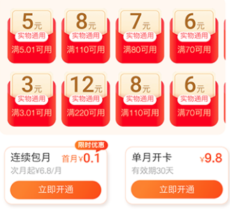 这个套餐是淘宝根据个人大数据计算,在基础套餐之上会有不同的浮动,价格以及红包的使用门槛也会有不同的偏差,但是红包领取限制都是一样的,一个天只能领取一个红包,大促时候可能会放开限制一天领取两个。