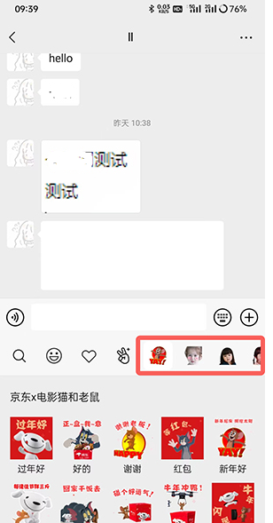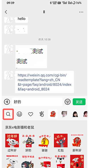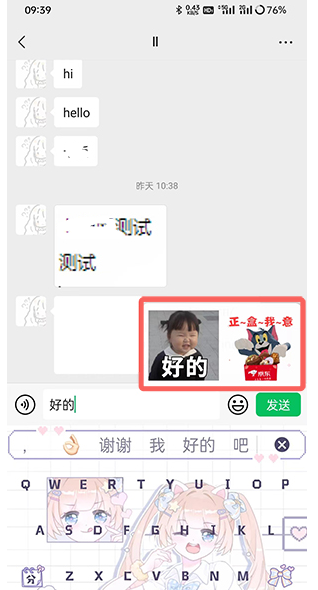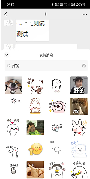 3、在输入框中输入需要的表情包内容,会直接显示已添加的表情包中的表情,点击可直接发送;