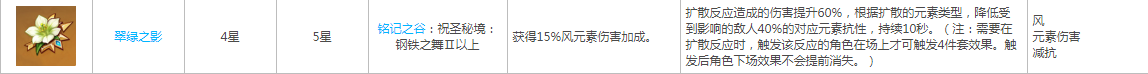 万叶由于其独特的染色机制,可以做到双减抗双增伤。这在双主C阵容中具有十分重要的作用,能够为不同属性的主C都提供对应属性的减抗和增伤,能大大提高队伍伤害。万叶的辅助配装是苍古自由之誓+风套或者铁蜂刺+风套。