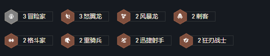 前期双射手配合前排过渡,冒险家的怪除了瑞兹都可以单挂,EZ寒冰豹女奥拉夫都适合带霞装备打工,前排就用斗士护卫重骑这些卡。