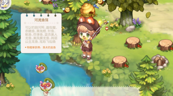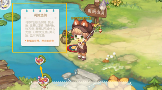 点击地图选择青木森林,往上面走就可以看到叮咚小溪,是很多人童年的回忆,来到这里开始钓鱼吧,叮咚小溪里面河流分为不同地段,上中下三个不同地区,能够钓到不同种类的鱼。