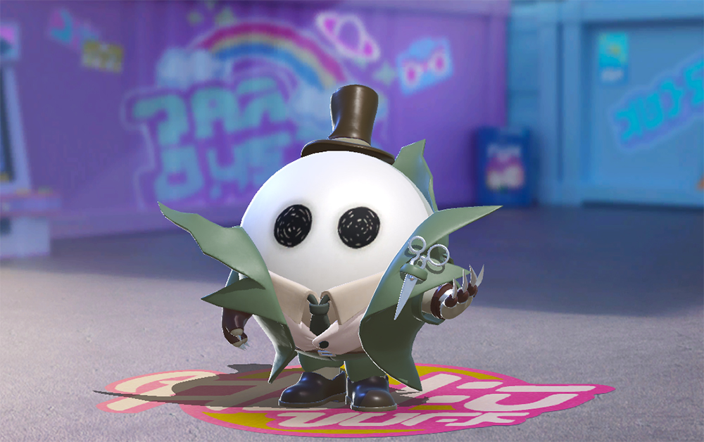 标志性的深棕色高帽,干练修身的立领式风衣,搭配细节感满满的白色内衬与墨绿色领带,再穿上一双英伦小皮鞋,端的一副极具绅士风度的样子。倘若不看衣领处闪着阵阵寒光的剪刀与锋利的爪刃,你将会认为他毫无威胁感。