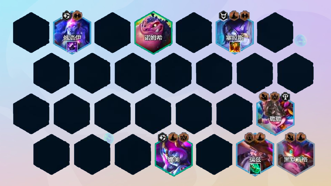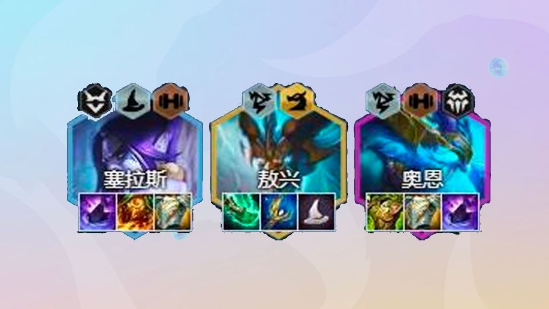 3阶段:连胜就3-1回合用3星界龙升6人口大搜,俄洛伊、塞拉斯、娜美、瑞兹、璐璐、黑默丁格,运气好三费卡能有几个二星质量就够了,圣坛选择法师相关即可。