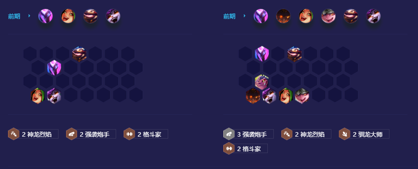 前期直接用低费斗士和炮手打工上人口即可,尽量多做装备提高质量打连胜