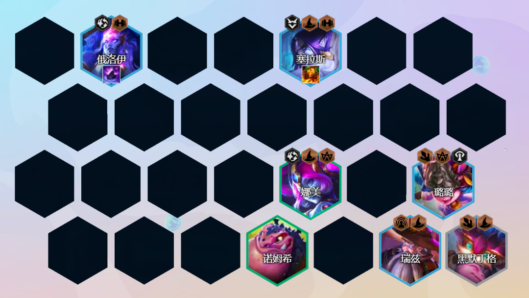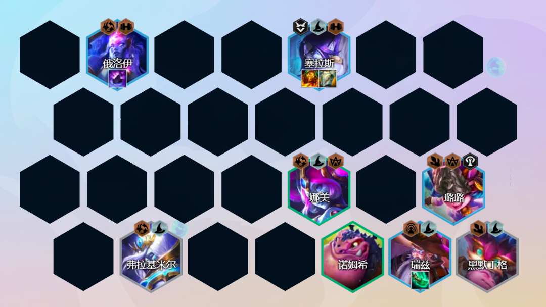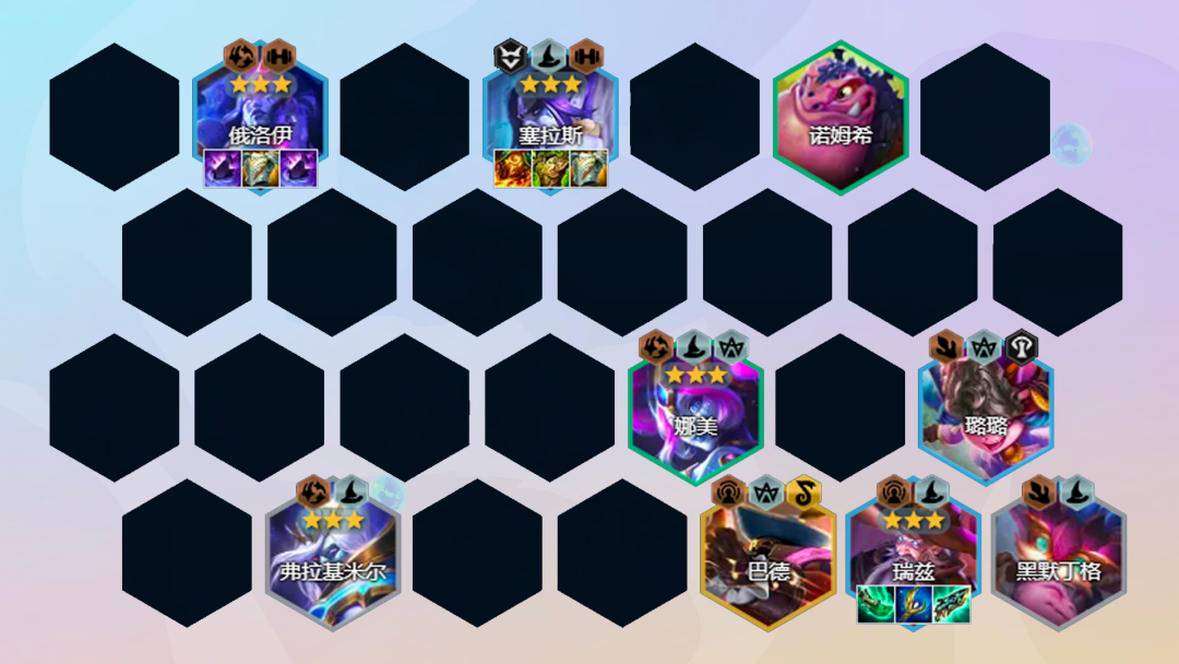 阵容组成:黑默丁格、璐璐、塞拉斯、巴德、瑞兹、俄洛伊、娜美、弗拉基米尔