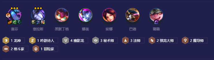 如果牌运实在太差,也可以7级硬D看运气。8级阵容成型主C主T二星就可以上9了,没有巴德的时候,有魔道转就上凤凰加强琴女控制和减魔抗,或者单挂各种5费都可。经济好塞芬多或者有尼寇还没同行也可以追3星塞芬。9人口根据海克斯视情况上其他英雄,没有转职亚索是最佳选择。