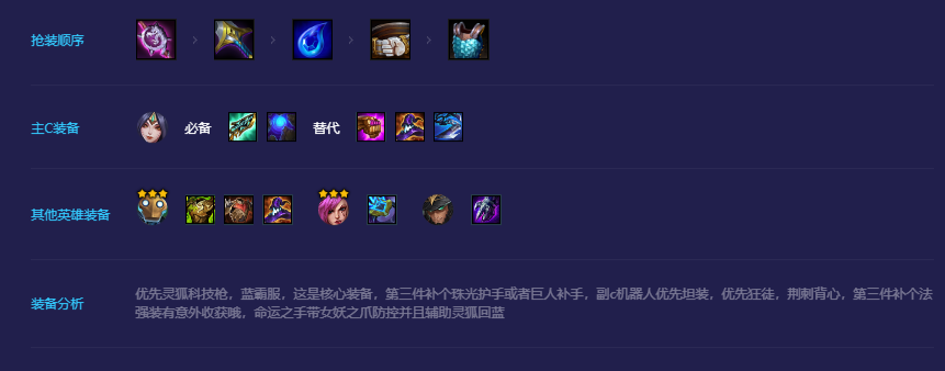 这套阵容主c灵狐,二段真实伤害,比较克制神将,斗士这些坦度较高阵容,被剑转重炮,沉默游侠等物理爆发阵容克制