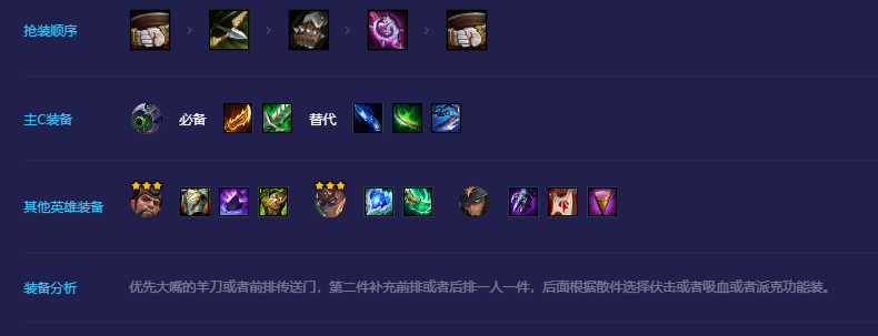 相对好打慢输出阵容,比较怕狂野刺忍刺男枪。打神将卡特法师都是小优。