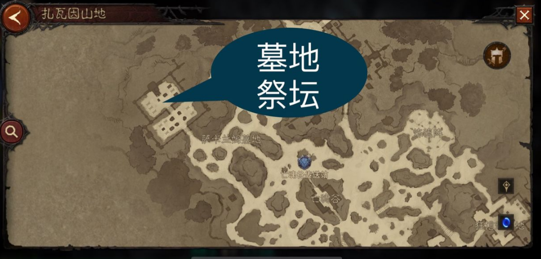 墓地祭坛的位置位于下图标注地方。