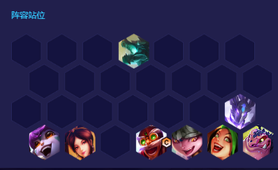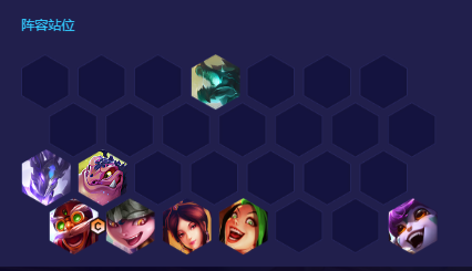 前排艾达丝单顶,库奇放在墙角,锤石和诺姆西贴在前面,璐璐和娑娜贴在旁边。崔丝塔娜和金克丝分开站。