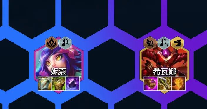 希瓦娜的技能与妮蔻第一次群控还能形成cobom,产生连环控制,之后希瓦娜释放烈焰吐息,直接可清理掉敌方大部分棋子。