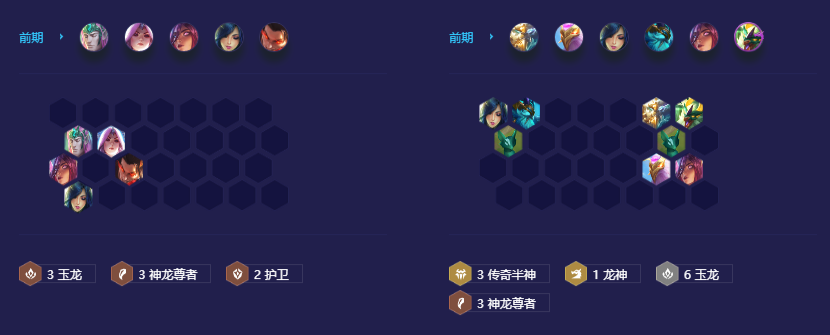 阵容是在7人口慢D三星,所以前期可以根据自己的嫖牌来选择过度阵容,斗射,护卫炮,永恩等过度都是不错的选择。,一般7人口之前不D牌,存钱到7口人梭哈找出一只石傲玉跟奥恩,其他全二星就能存钱慢D三星。沃利贝尔三星后就上8人口补露露,9人口上巴徳。