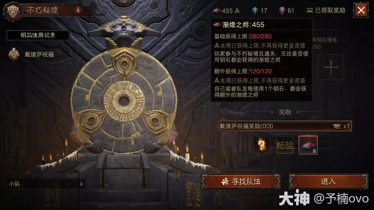在不朽秘境界面的上方,可以看到渐熄之烬的获取说明:
