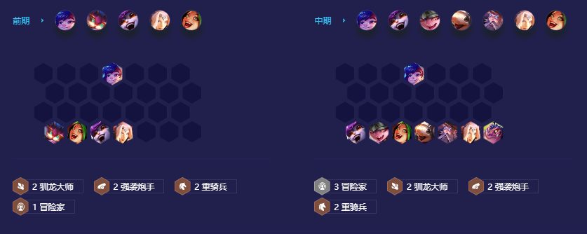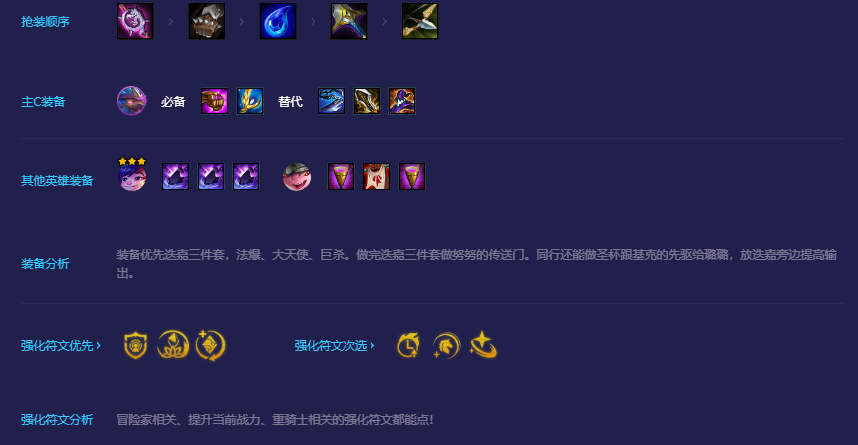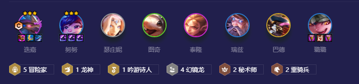 可以重骑士炮手过度,前排瑟庄妮跟努努,后排小炮璐璐金克丝,金克丝带迭嘉装备。2-1升4,2-5升5,3-2升6,4-1升7,5-1升8!