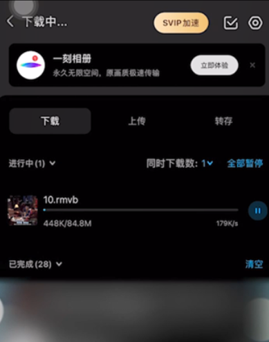 4、最后打开百度网盘,下载文件,此时会看到下载列表中的进度条有反应了