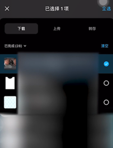 第三步:下载完毕后点击该文件旁的圆点图标,选择底端保存至相册;