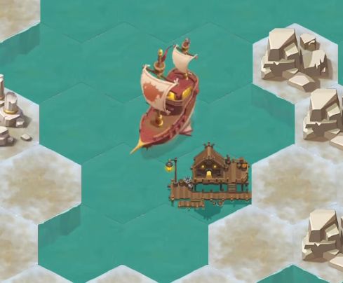 4、将该区域的敌人消灭干净以后,再次切换成船只模式来到下图的位置。