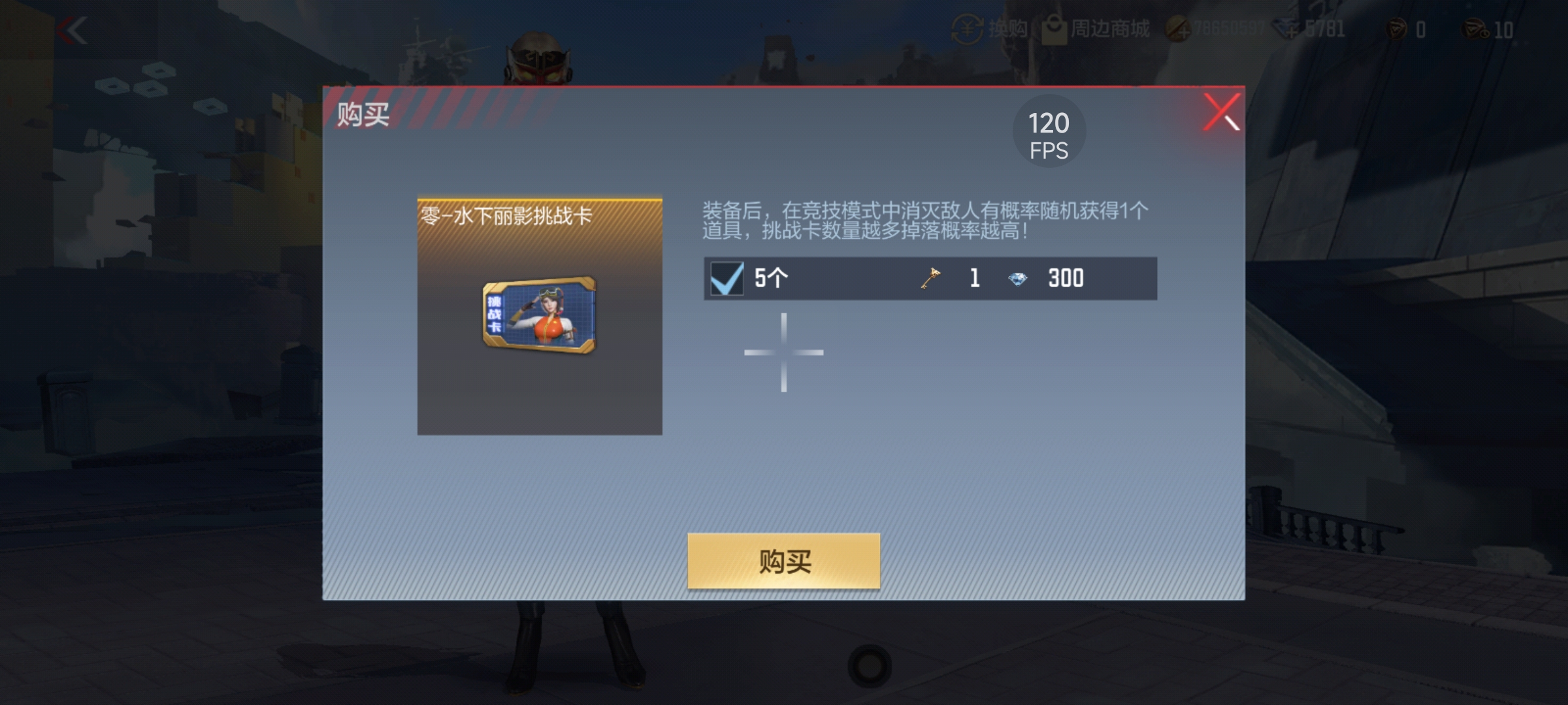 与常规角色的产出方式不同,这款零-水下丽影的产出方式为挑战卡产出,版本更新当天这款角色的挑战卡就偷偷摸摸上线至了咱们的道具商城中,并且价格也非同寻常,5张零-水下丽影挑战卡需要花费300钻石+1钥匙才能购入。说实话这个价格还是较为昂贵的,对小编这种肝帝玩家只能望而却步啦~