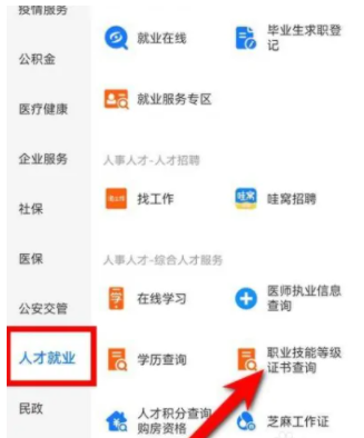 2,点击办事大厅,点击人才就业,再点击证书查询。