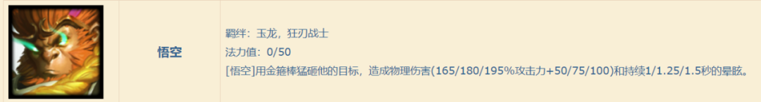 悟空的技能与之前赛季类似,技能还是物理伤害与单体控制,基本上这版本是玉龙与狂刃,整体来看与基本契合度比较高。