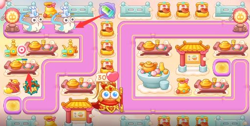 1、这一关我们可以选择的炮塔为毒针、泡泡塔、闪电炮、多重箭、烟花,这一关需要使用多重箭和烟花输出。