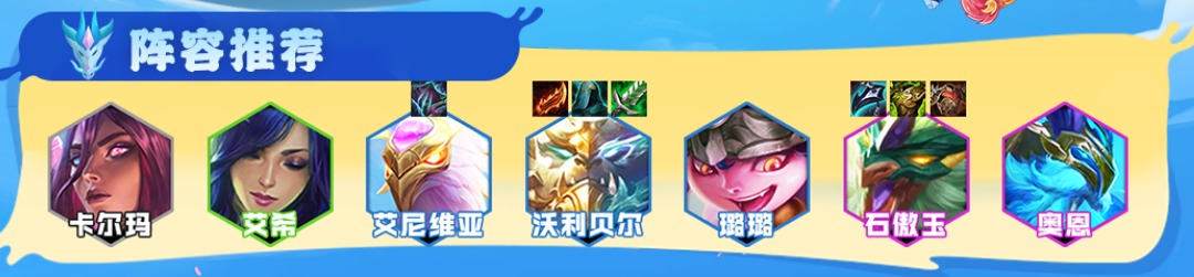 需求棋子:卡尔玛、艾希、艾尼维亚、沃利贝尔(主C)、璐璐、石傲玉(主T)、奥恩