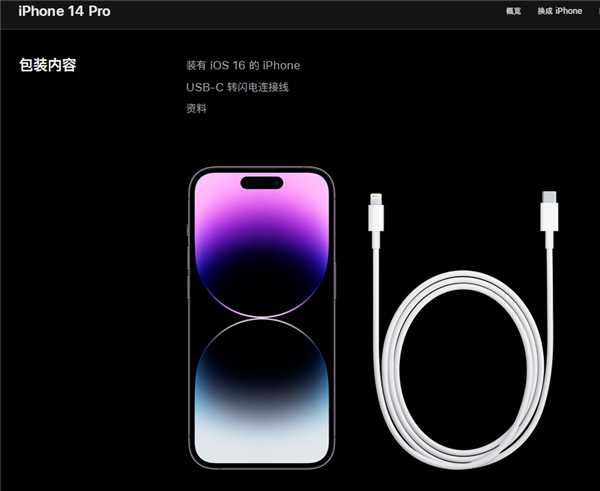 现有的电源适配器、带有闪电接头的 EarPods,以及 USB-A 转闪电连接线均适用于iPhone 14Pro。由于这些配件在全球的拥有量已达数十亿,随附的新配件往往被闲置,因此iPhone产品系列将不再随附这些配件。这将会减少碳排放,以及对稀有原材料的开采和使用。产品的包装也会因此变小,每次可运送的产品数量则相应增多,这样整体的货运次数就会减少。同时,苹果还推动制造商合作伙伴转向使用可再生能源。所有这些举措,每年可减少 200 多万吨的碳排放。可以继续使用手里的 USB-A 转闪电连接线为新 iPhone 充电,也可用现在包装盒中随附的 USB-C 转闪电连接线来快速充电。而且,随附的连接线还可搭配你的 USB-C 电源适配器或电脑接口使用。