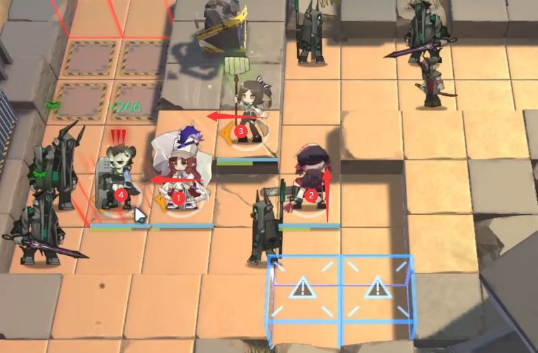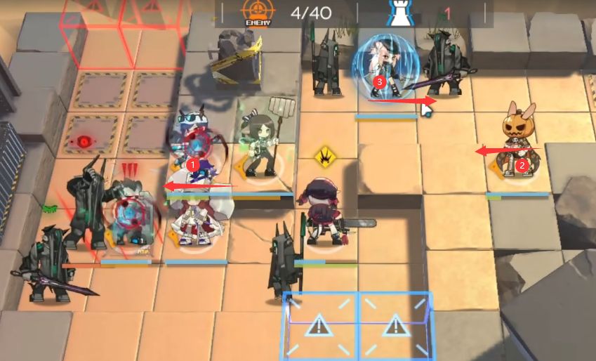 继续部署:水陈(向左)→ 单狙(向左),然后下砾唤醒右上角持剑的萨卡兹。