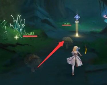 2、按照图中的路线来到更深的山洞中,如图所示。