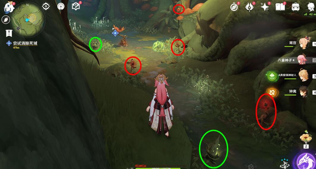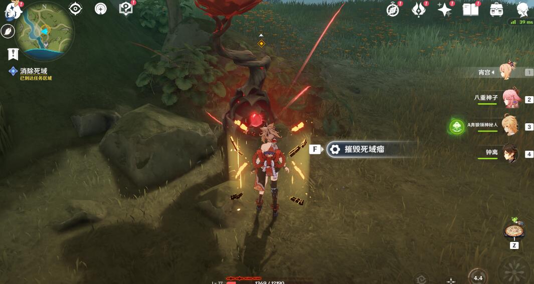 身上携带草种子,利用重击或者瞄准射击来发射草种子攻击「死域枝节」的果实部分(瞄准根部无效)