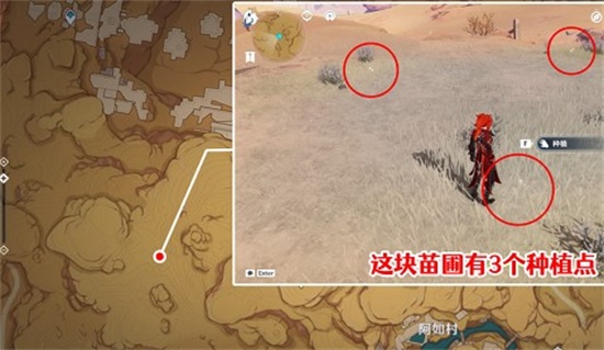 拿上金蔷薇种子之后,我们可以把它们种植到阿凡在阿如村西边的苗圃里,苗圃位置如下:
