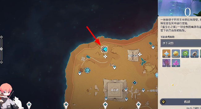 1、前往千柱花园,如下图所示。种子就在该地图的西南方向。