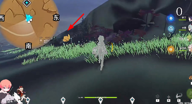 2、传送过来之后,往地图的西南发现走,会发现有一堆花,利用元素视野进行探索,即可发现种子的存在。