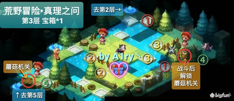 右上需要和【比格】战斗一次,解锁左下蘑菇机关