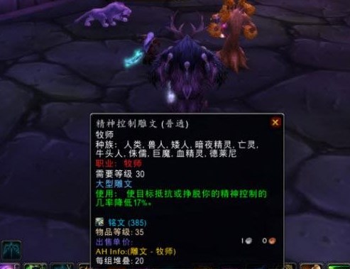 牧师心控命中率低下的原因就是教官学员等级过高,需要很高的命中等级才可以完美心控。如果是暗牧,本身就堆满了命中,也仍然需要一些命中药水和食物来提供加成,即便如此失败率还是不小,因为心控过程中小怪会不停尝试挣扎解控。所以真正解决心控难题的道具就是——精神控制雕文。没错,所以才说现在是铭文专业最大的福利,拍卖行几乎找不到这个东西,开团本前也没几个人想到,教官居然几乎强制需求这个雕文。