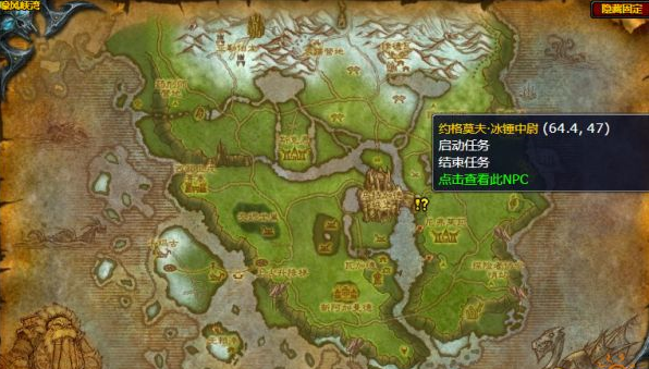 冰霜堡往北不远处隔着一条很深的沟的悬崖,营地附近有很多钢铁矮人。
