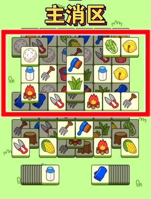 2、如上图,我们今天先来消除掉核心区的主消卡牌,尽量一层一层的去消除!