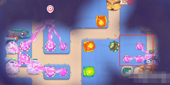 8、最后我们优先锁释放果冻的炮塔,最终炮塔摆放位置如图所示。