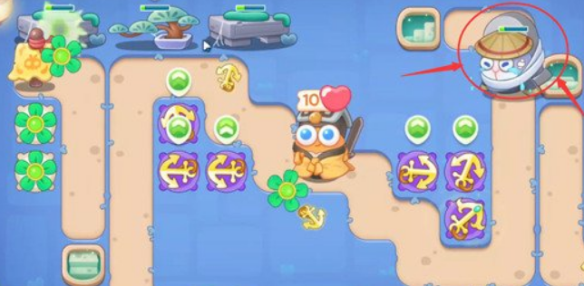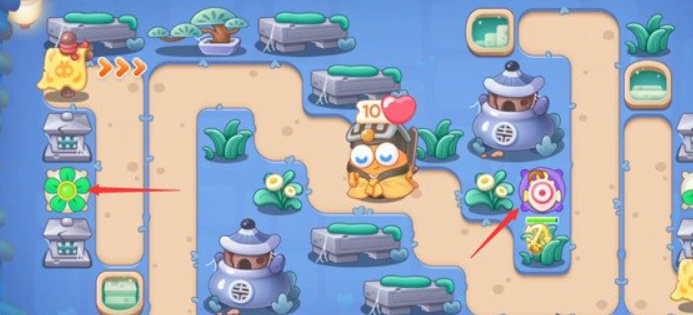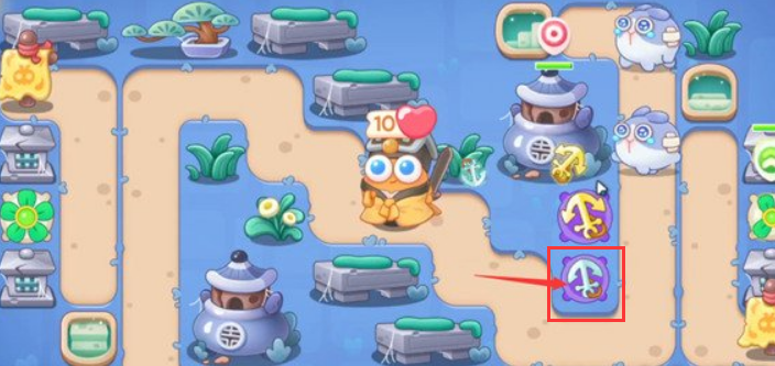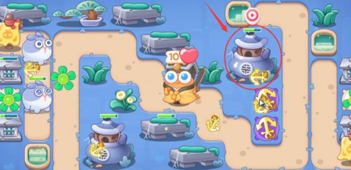 3、将第二个船锚塔升满级,两个船锚塔优先攻击上方的丹炉。
