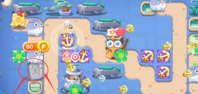 5、图中位置补上一个船锚塔,并将所有的船锚塔都升至满级。